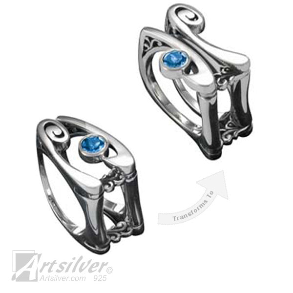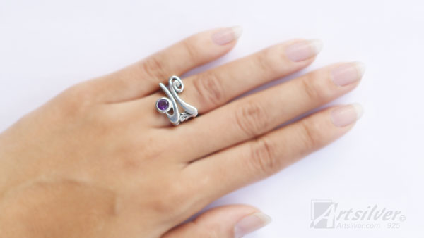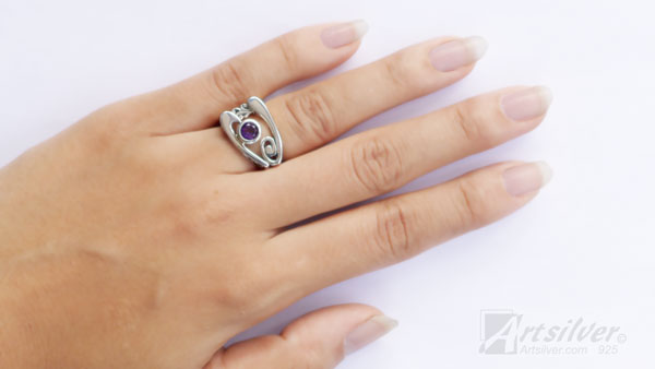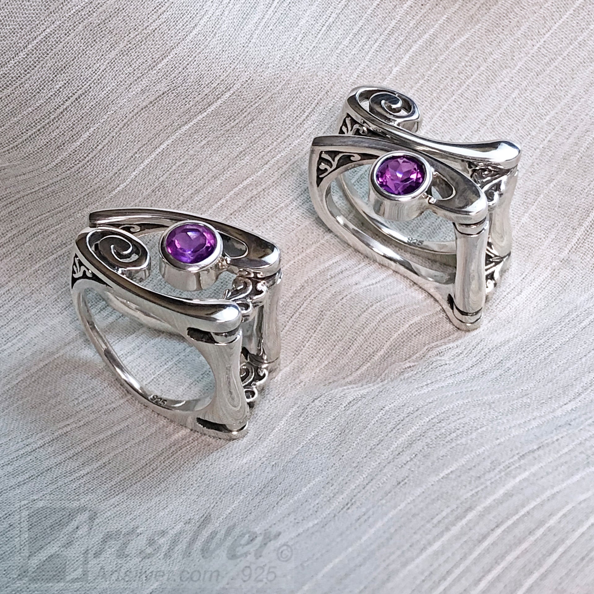 Multiform Amethyst Ring. Unique Sterling Silver Spiral Art Nouveau Ring. Worn Multiple Ways. Changeable Transforming Multiform Ring Amethyst (style KS201)