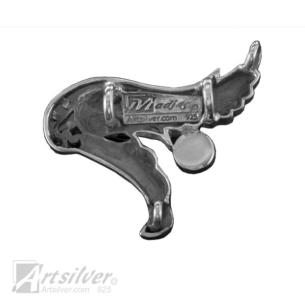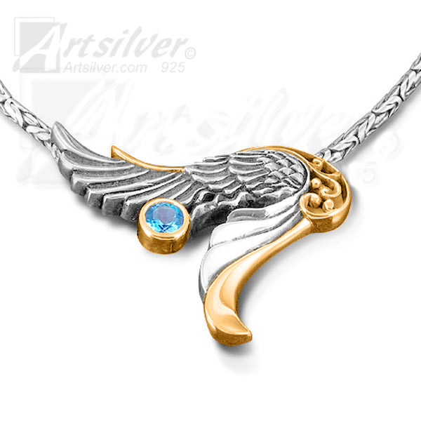 Angel Wing Pendant. Silver Wings Pendant With 18K Gold Overlay On Feathers, Set Semi-Precious Birth Stone Angel Wings Pendant Black Pearl Gold Overlay (chain sold seperatly)