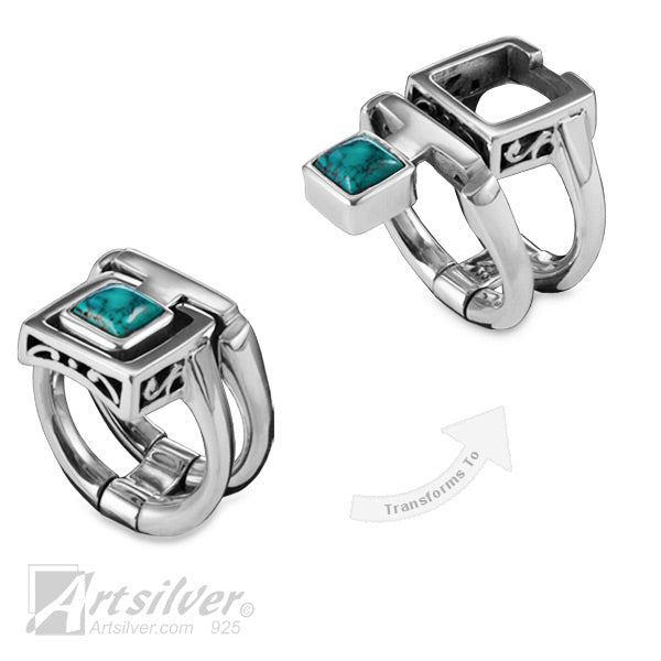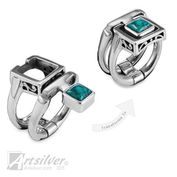 You can have a new piece of jewelry everyone will notice. This ring is a hollowed out silver filigree square with a bold gemstone set in the middle. The hollowed out square also can sit on its own at the top of the ring with the gemstone laying solo on the bottom half. Another shaped ring that is so pleasing to the eye. Choose an Onyx (black) or Turquoise (Green) Precious stone.