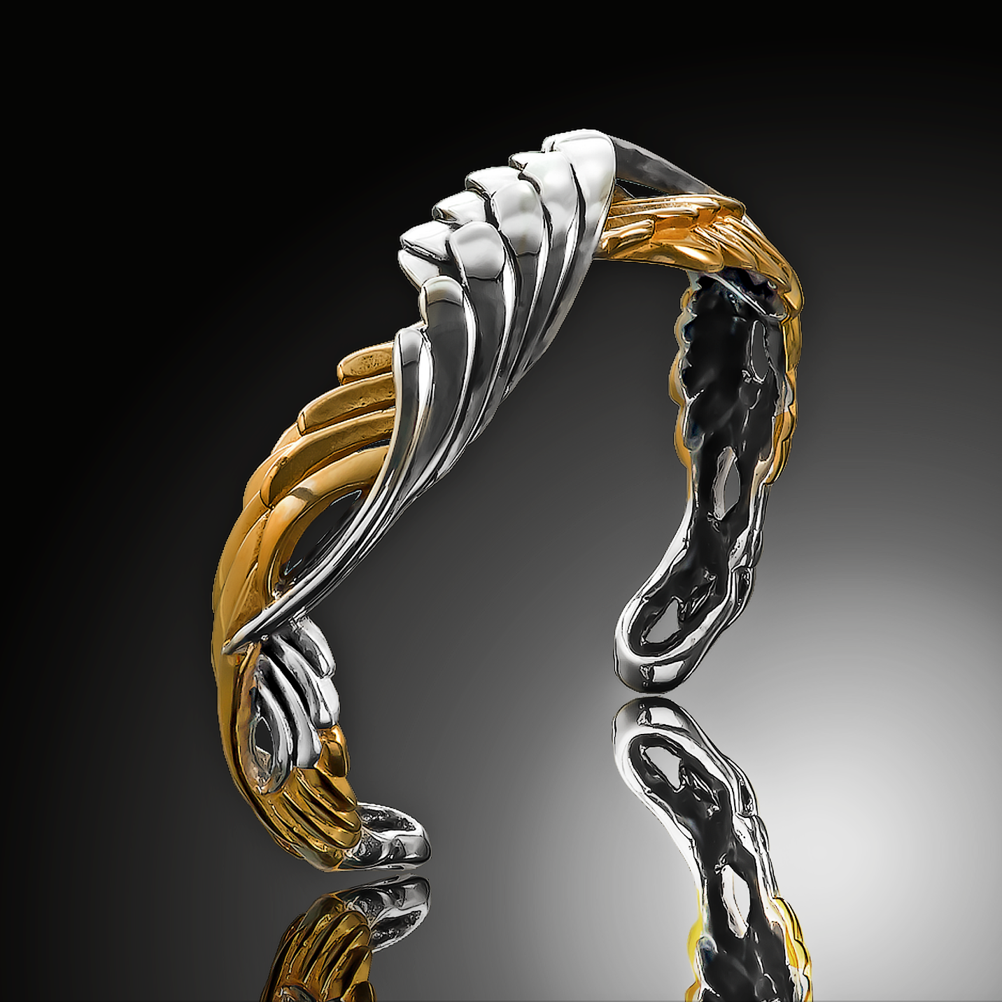 Angel Wing Bracelet Sterling Silver Mobius Cuff Bracelet with Gold Overlay (style # KS244)