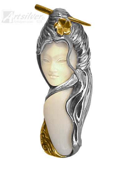 This asian influenced piece has a shoulder exposed with 18 karat gold plated highlights in the hair